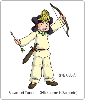Sasamori: A clan leader from Ashimori and worked for “Kibitsuhiko no Mikoto”. It is said that the monkey in the fairytale “Momotaro ( peach boy)” was modelled on him.