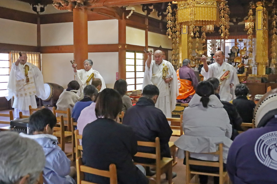 龍泉寺の春季大祭「八大龍王祭」が4月21日(日)に執り行われました。時おり小雨が降る空模様のため、「八大龍王大宝塔」前での開催を、急遽、拝殿に移して行いました。