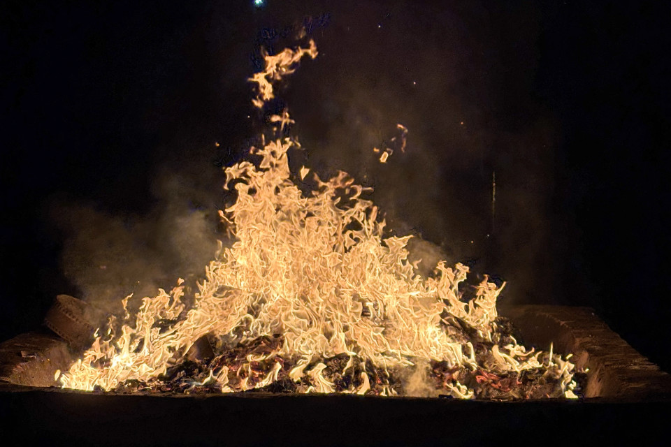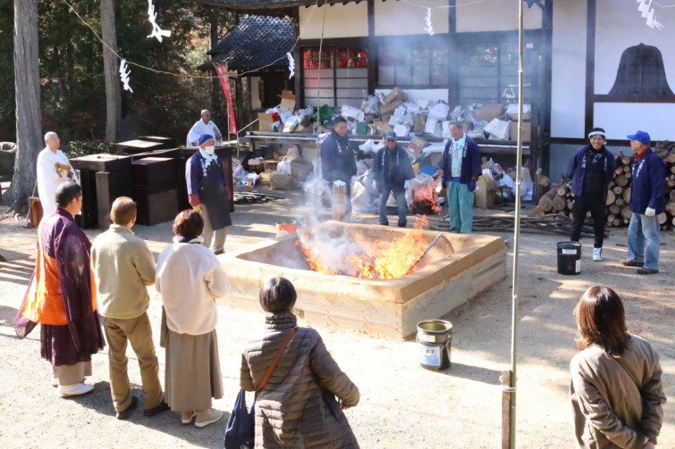 護摩壇に投入された役目を終えた塔婆
